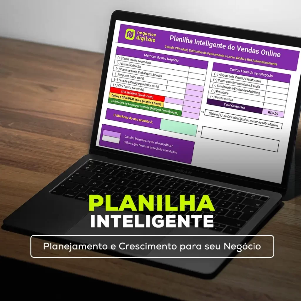 Planeje o crescimento do seu negócio. Calcule de forma automatizada as metas de vendas, margem de contribuição e Markup, CPV, CPA, ROI, ROAS para tomar as melhores decisões.